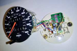 The electronic devices in classic cars consists of discrete electromechanical components. With age these components often start to malfunction. To preserve the classic design, we suggest repairing the original instruments.